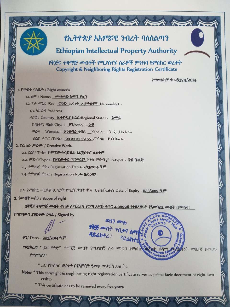 ካለባለቤቱ ፈቃድ ኮፒ ማድረግና መጠቀም በህግ ያስጠይቃል!